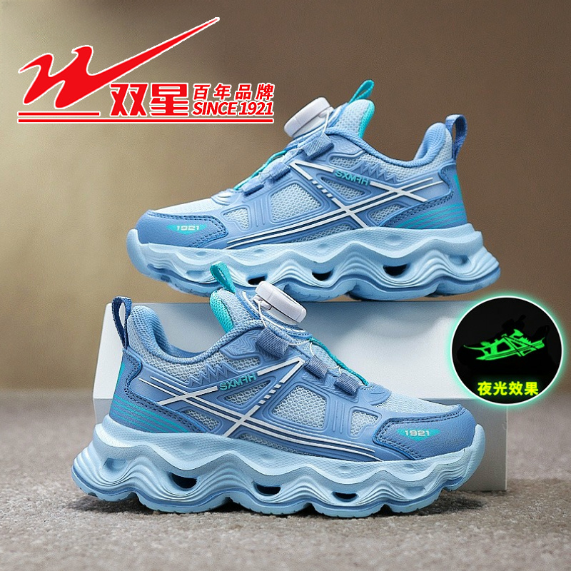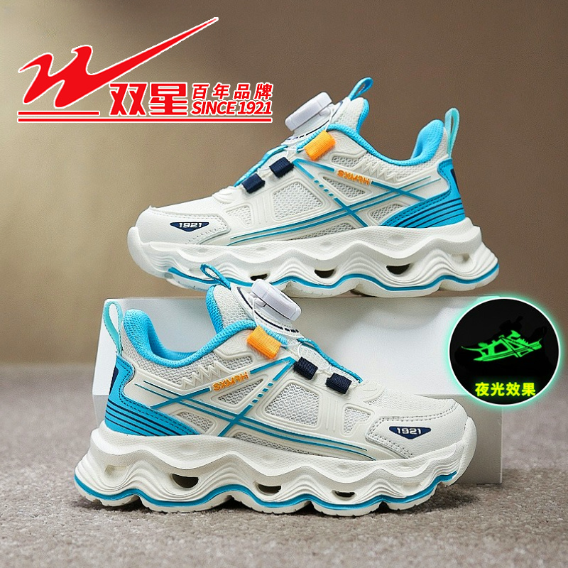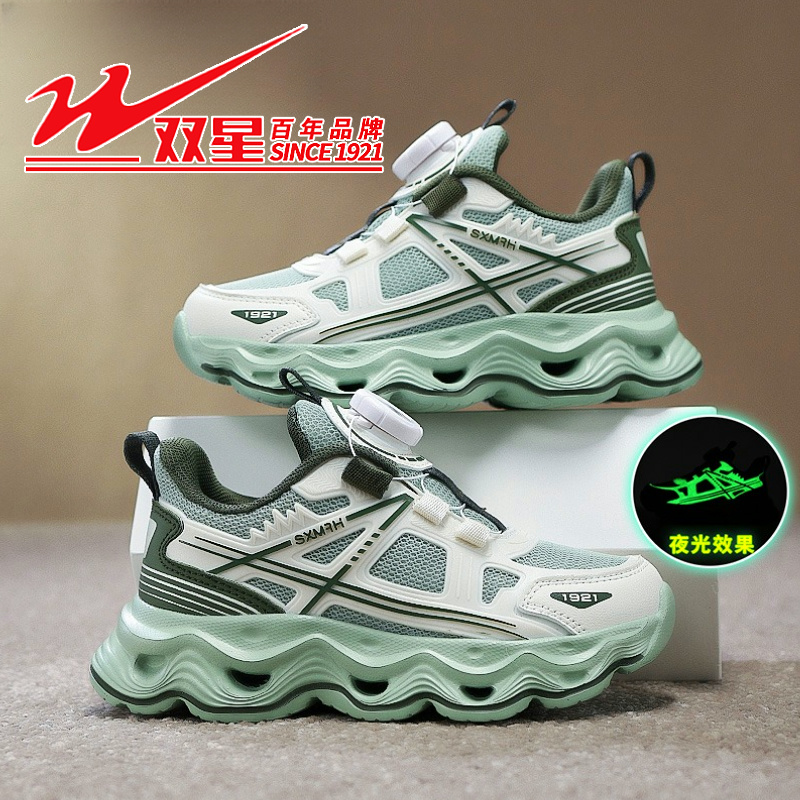 双星男童运动鞋2025春秋款夜光网面透气休闲鞋儿童超轻软底跑步鞋