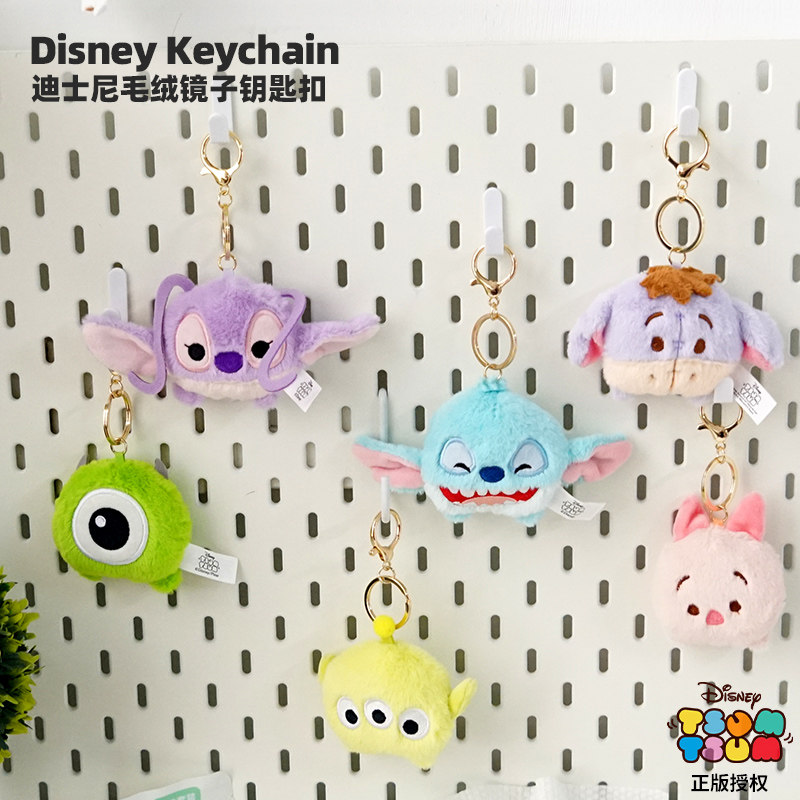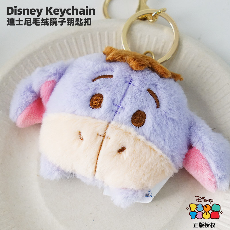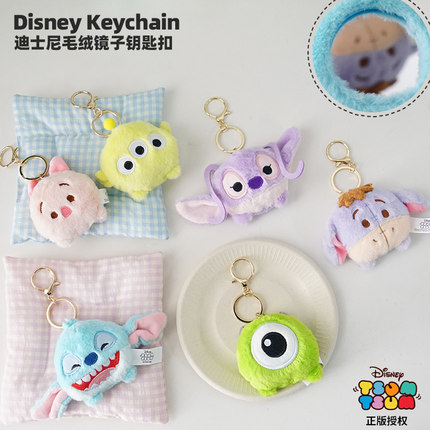 正版迪士尼毛绒镜子钥匙扣挂件背包书包可爱米妮跳跳虎维尼熊玩偶