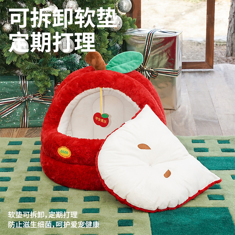 zeze网红苹果造型猫窝四季通用半封闭式狗狗窝冬季保暖猫咪宠物床