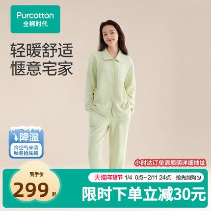 全棉时代女士睡衣套装长袖长裤纯棉家居服小翻领简约风休闲降温