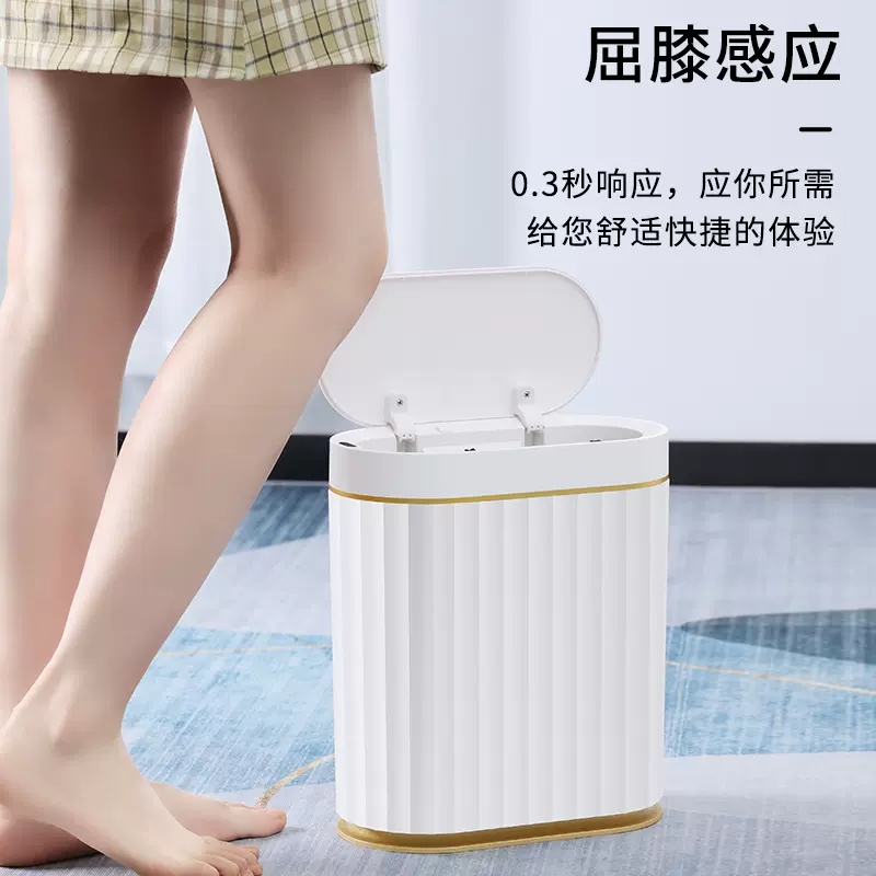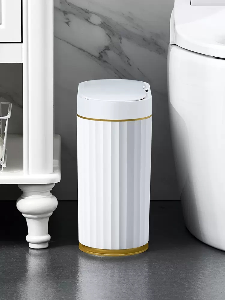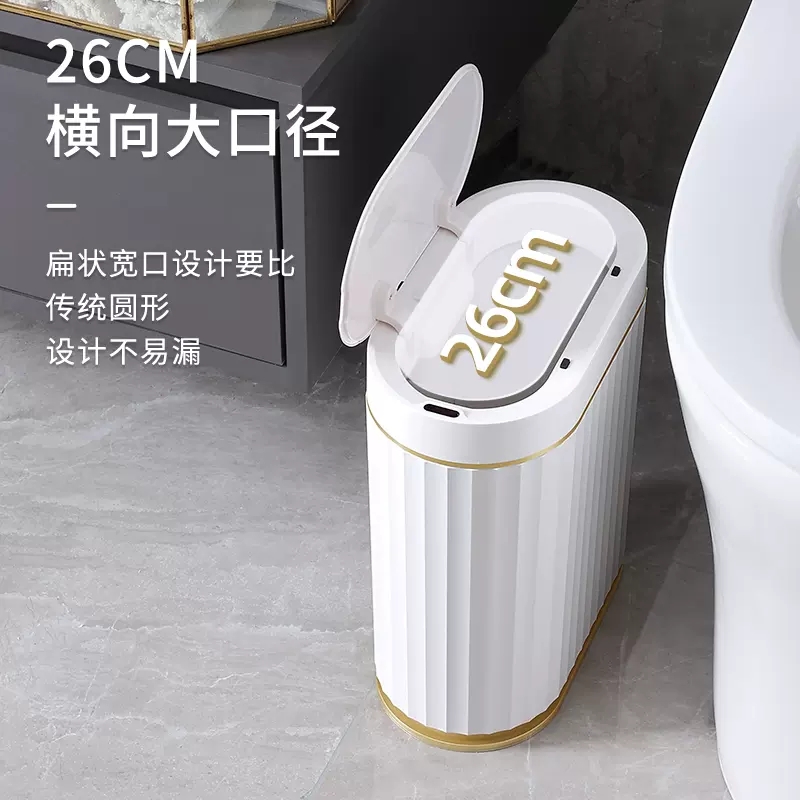 罗马纹轻奢感应窄形垃圾桶 卫生间 卧室夹缝带盖电动纸篓