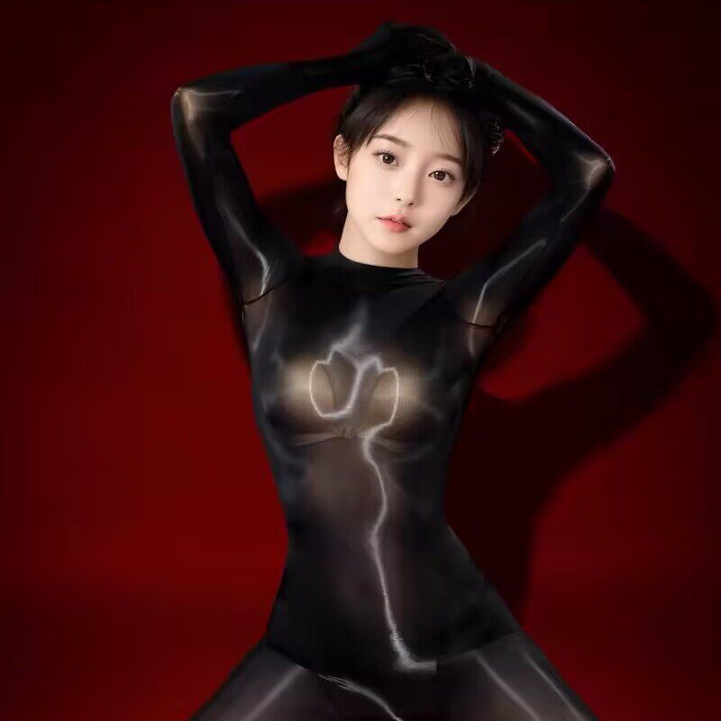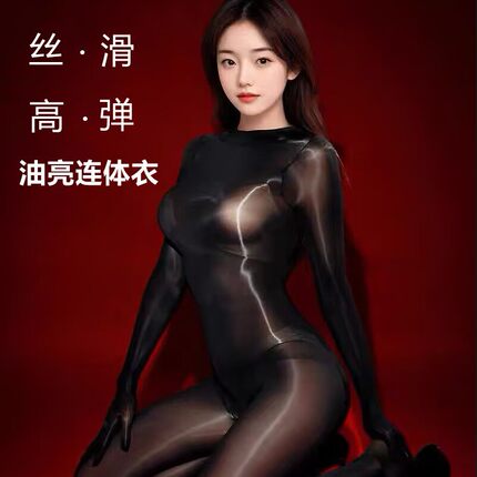 一体透明油亮无缝油光连身袜透视连体衣丝袜性感全包丝滑紧身衣女