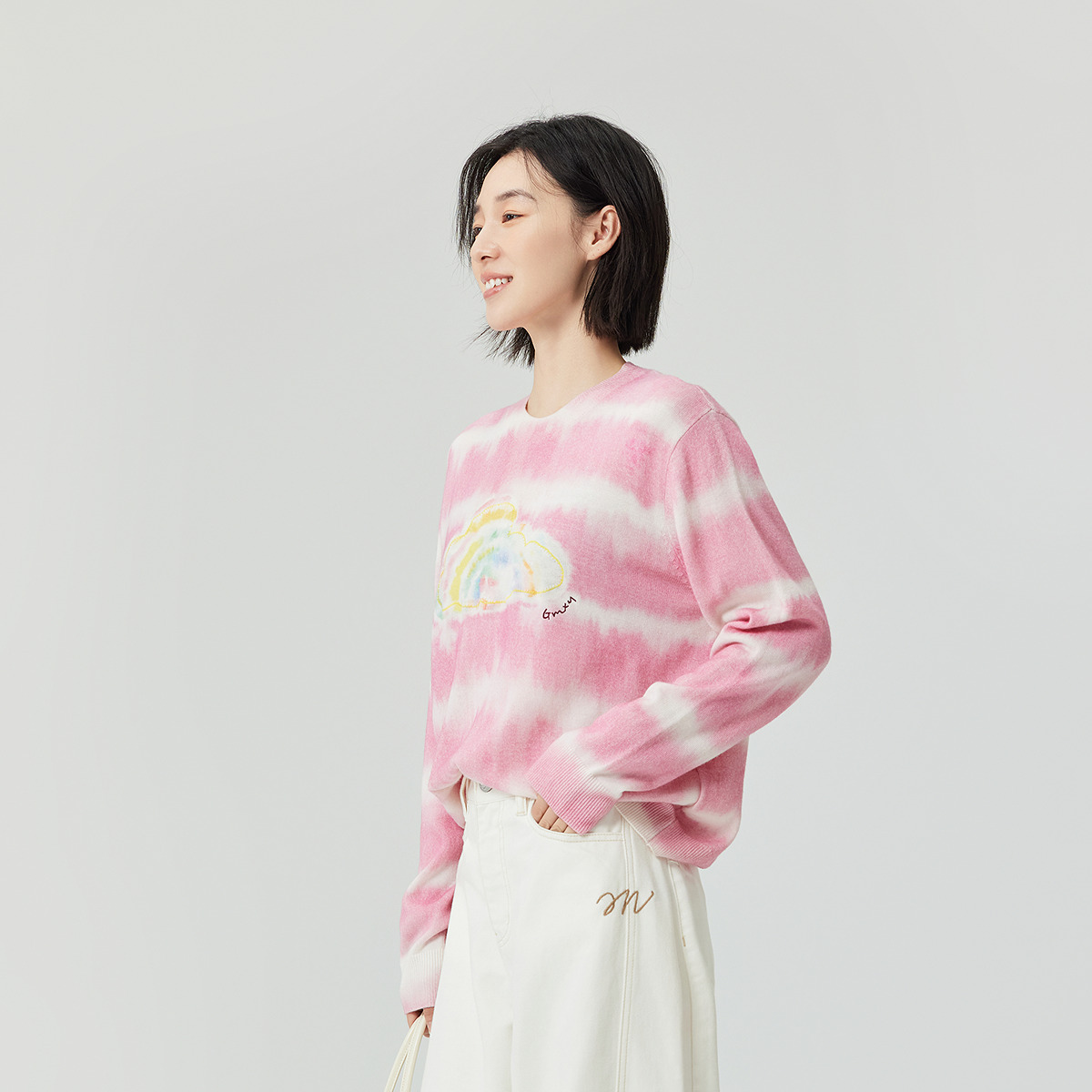 古木夕羊洋气时尚条纹云朵设计长袖毛衣女GS510034010