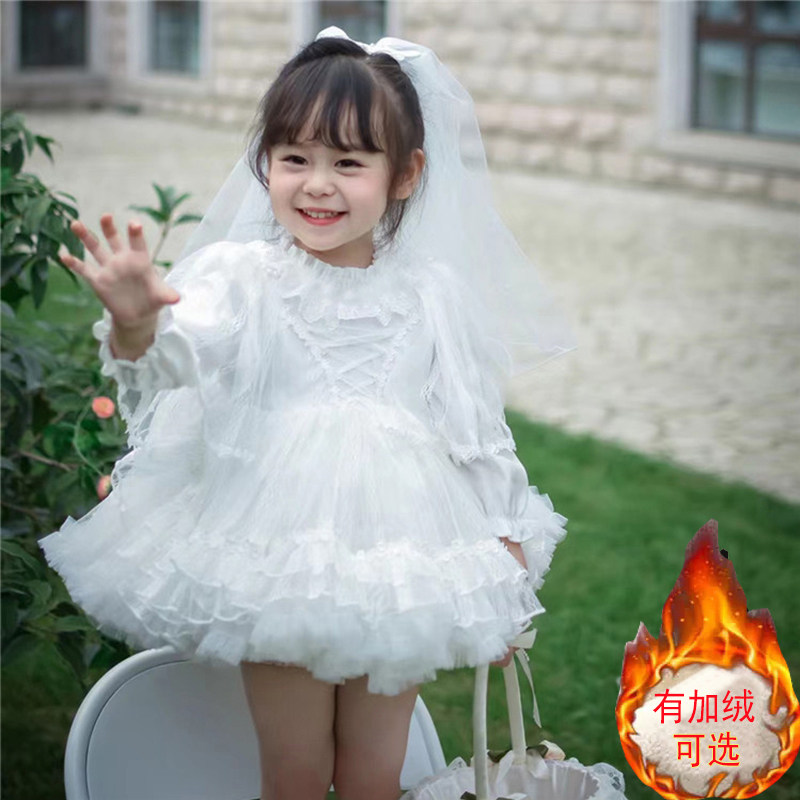 女童秋冬婚纱连衣裙蓬蓬裙tutu裙加绒生日花童礼服洛丽塔公主裙