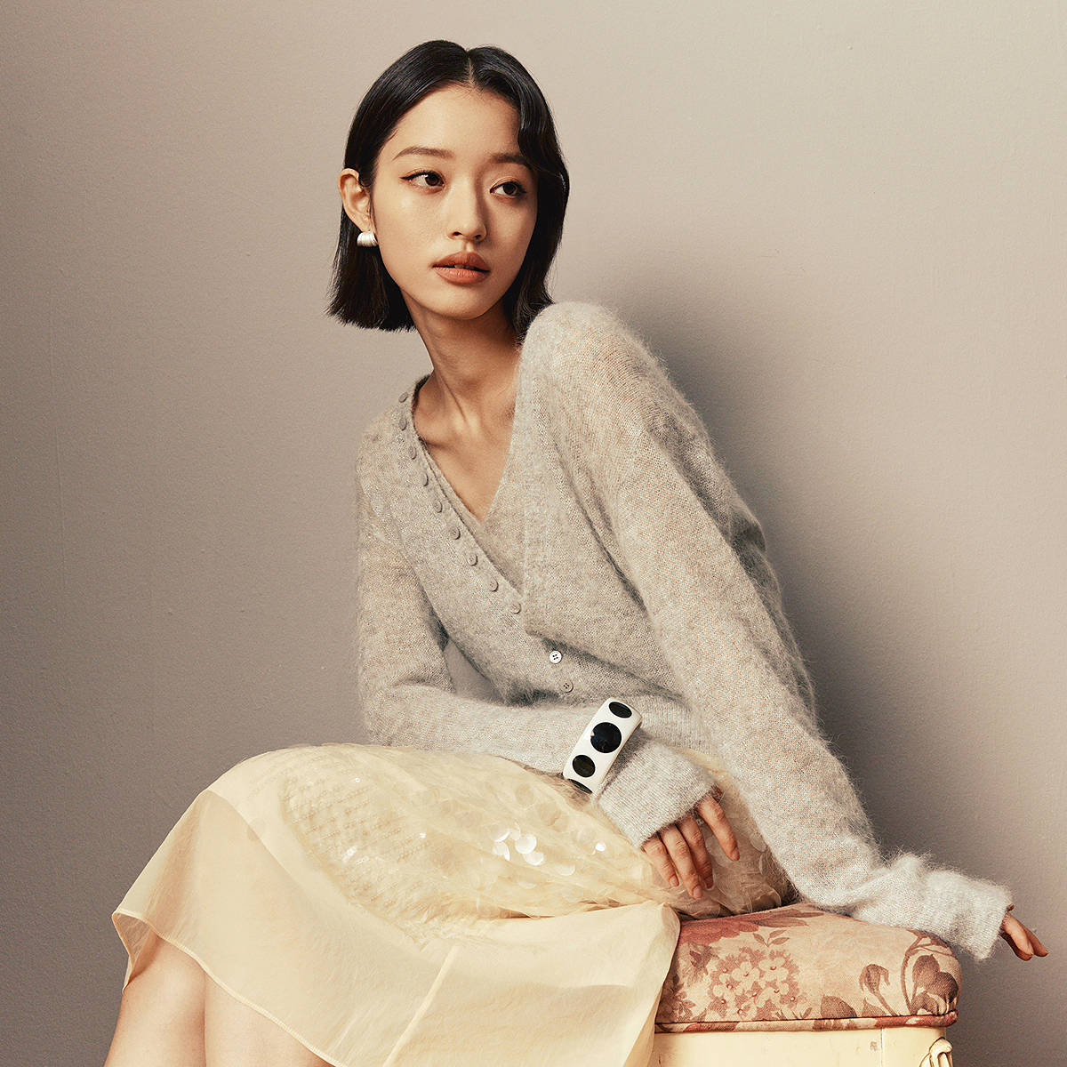 【WISH系列】VGRASS25早秋新款羊驼毛混纺纱针织开衫针织吊带套装