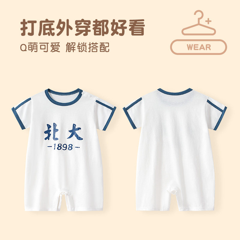 婧麒新生婴儿连体衣夏装宝宝衣服夏季薄款空调服纯棉短袖哈衣衣服