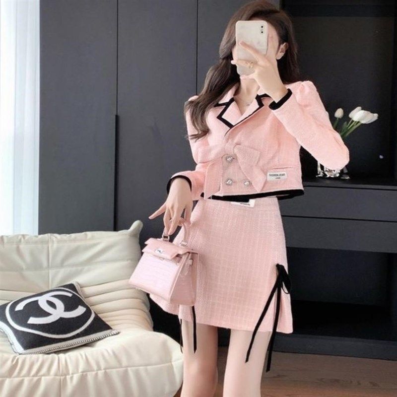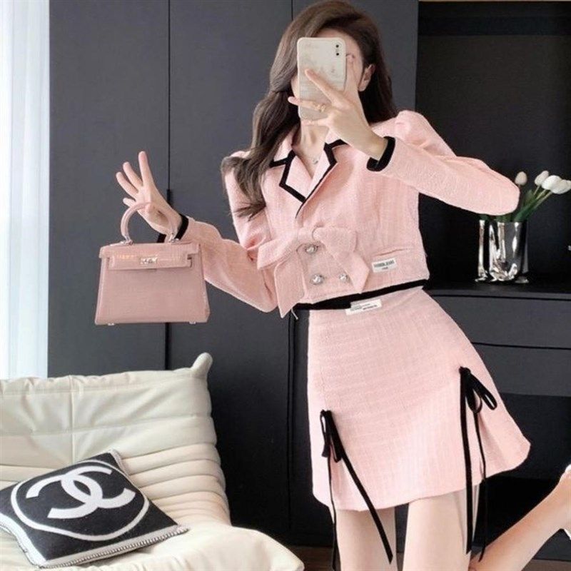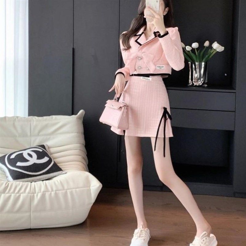 2024女装秋冬新款设计感气质名媛粉色可甜可盐时尚半身裙两件套装