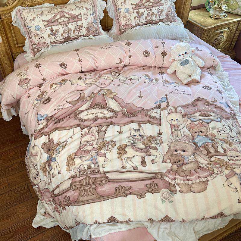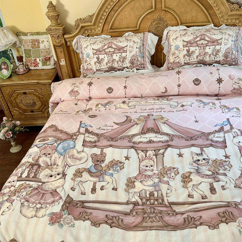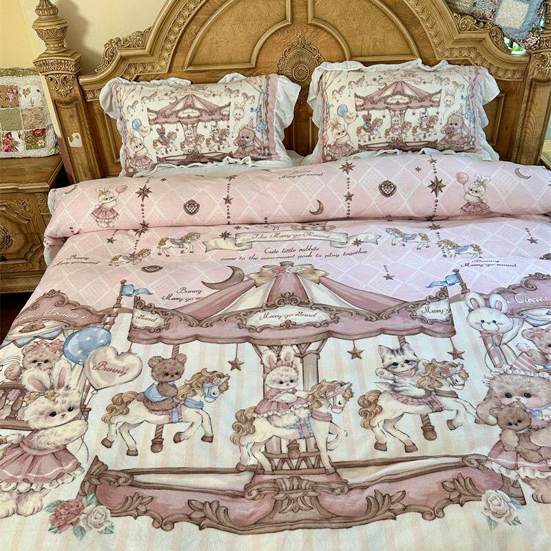 梨梦 兔叽游乐场 lolita牛奶绒四件套保暖珊瑚绒床单被套床上用品