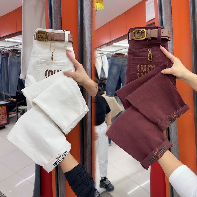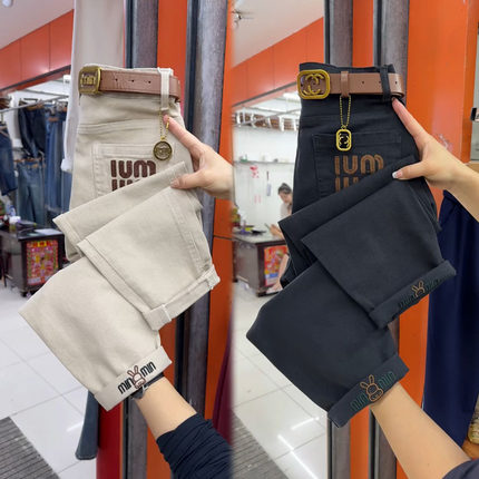 水洗棉高腰时尚刺绣休闲裤
