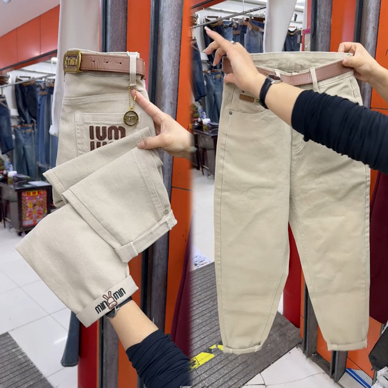 春季新款水洗棉休闲裤女百搭显瘦九分裤高腰时尚哈伦裤刺绣老爹裤