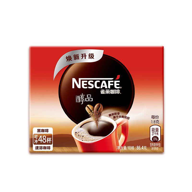 雀巢醇品黑咖啡无糖添加正品美式学生提神速溶纯咖啡健身48杯盒装