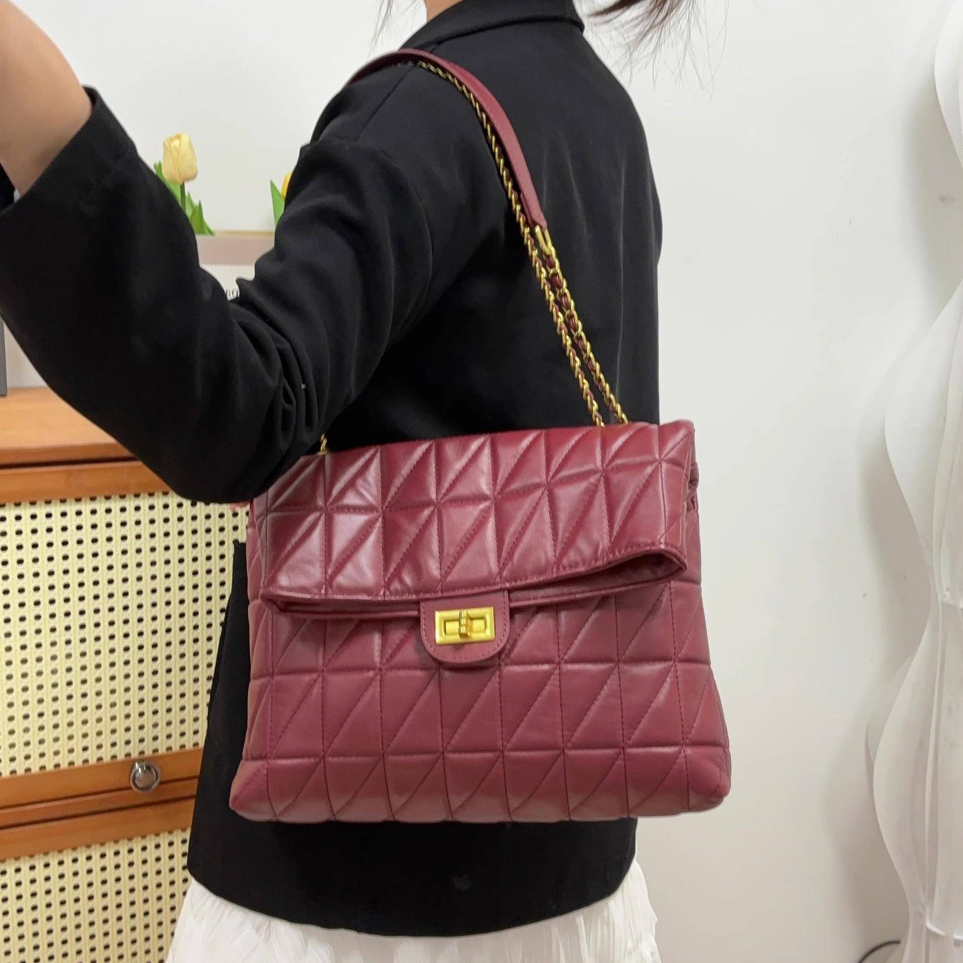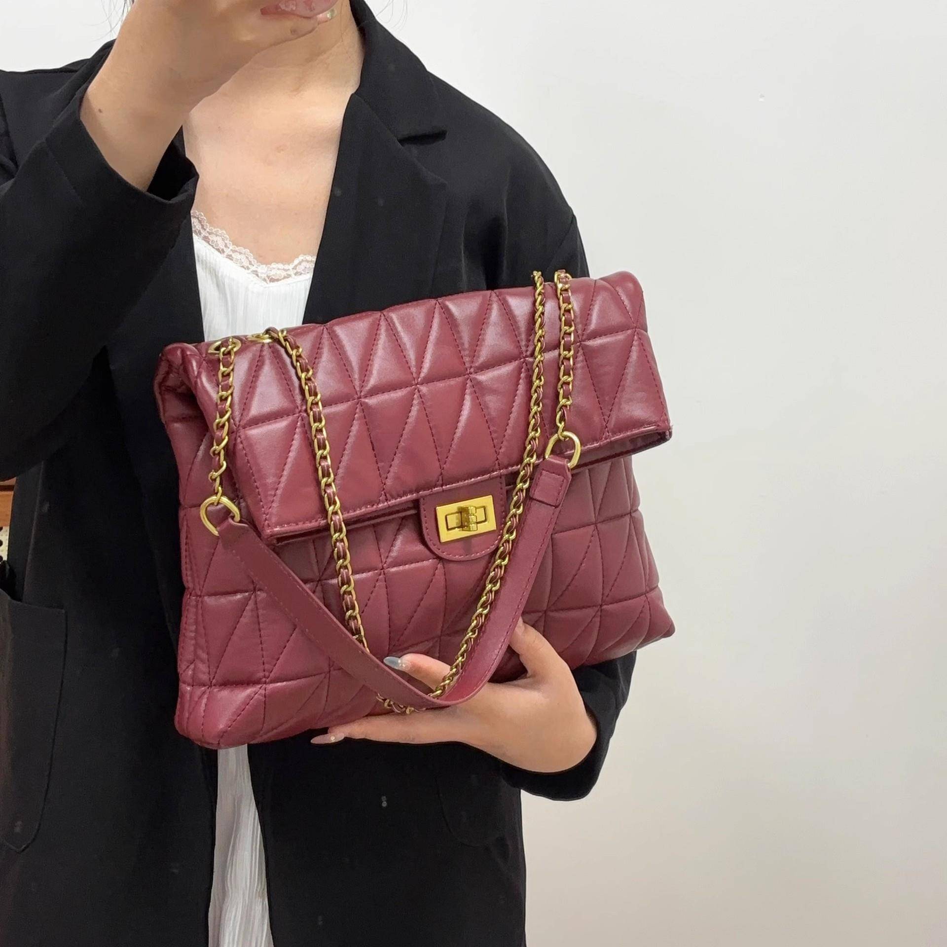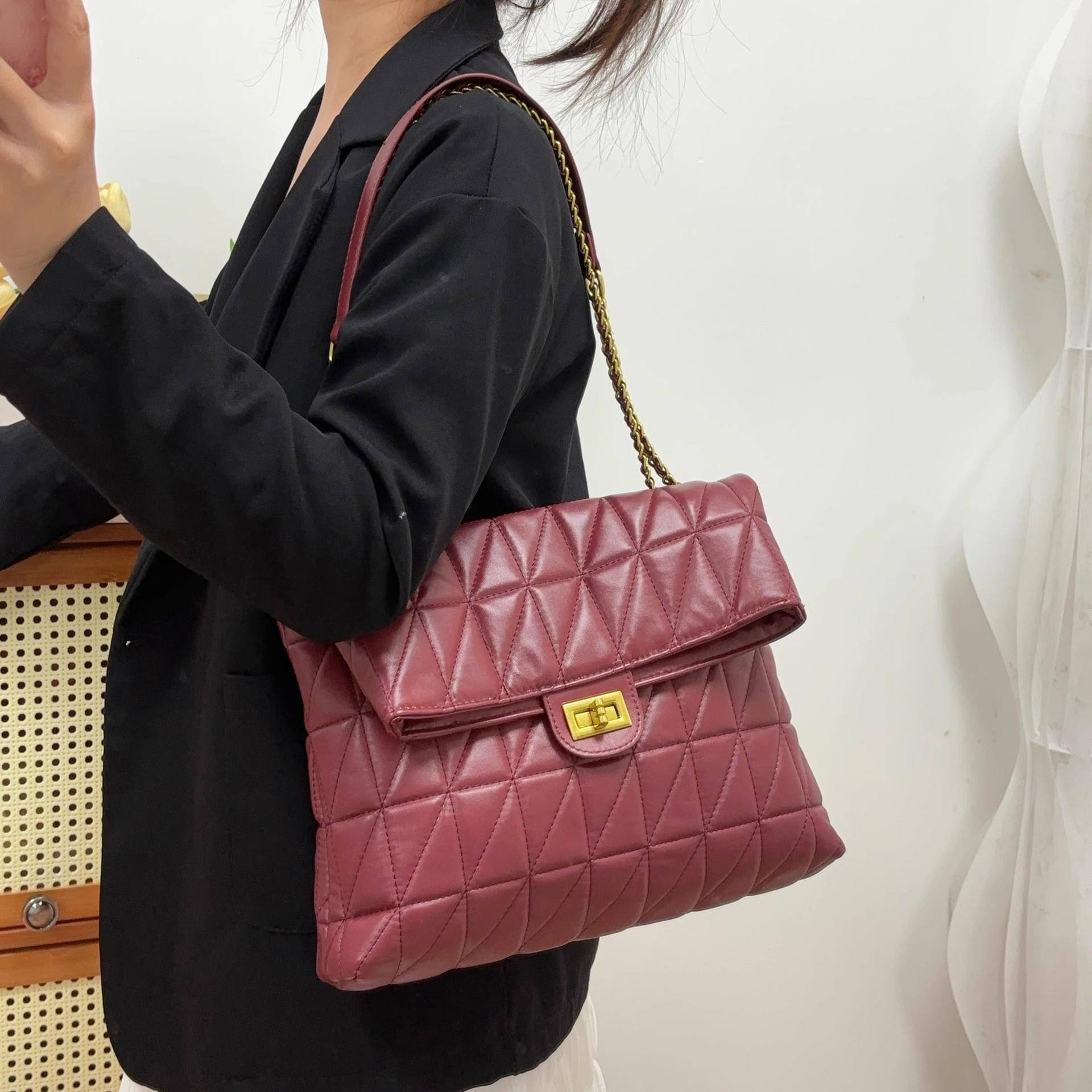 香港品牌小香风菱格流浪包包女高级感红色新娘结婚包大容量通勤托