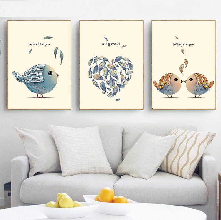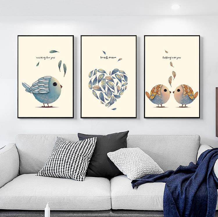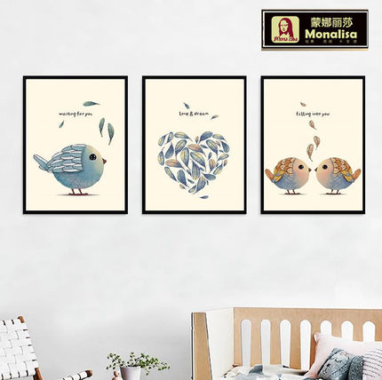 蒙娜丽莎印花十字绣LOVE三联画情侣鸟满绣2019新款客厅卧室简单画