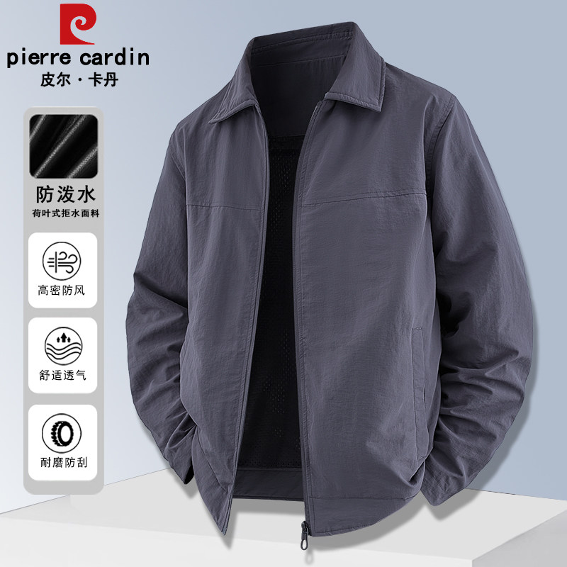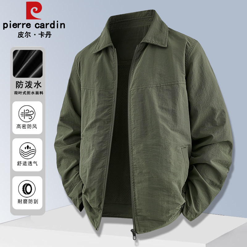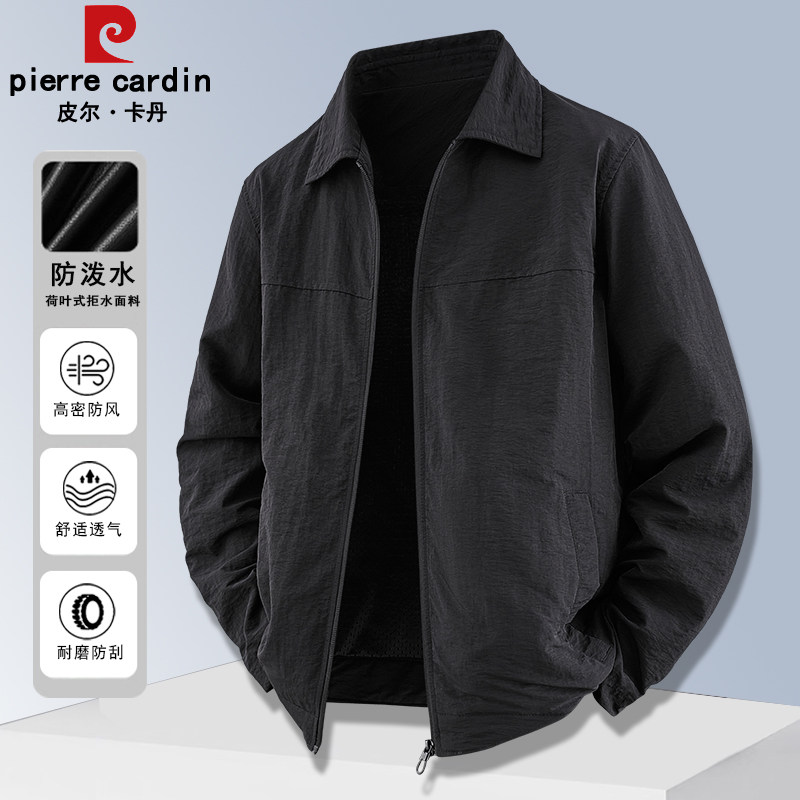 皮尔卡丹春秋季新款翻领夹克外套男士中青年休闲运动宽松防风上衣
