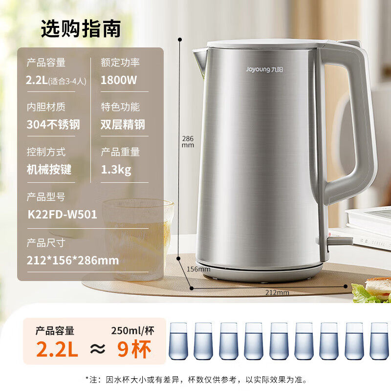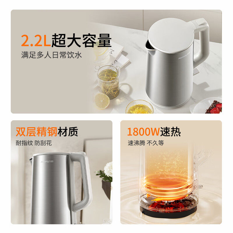 九阳电热水壶双层隔热家用大容量