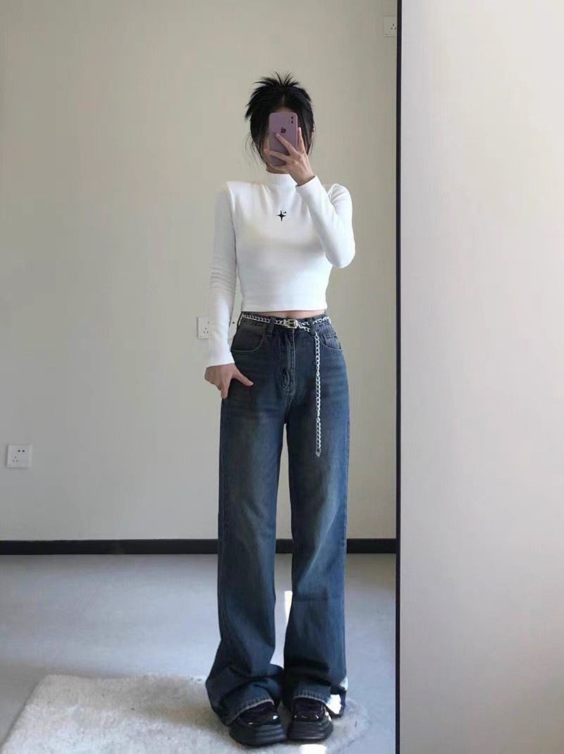 纯欲风白色半高领长袖通勤常规