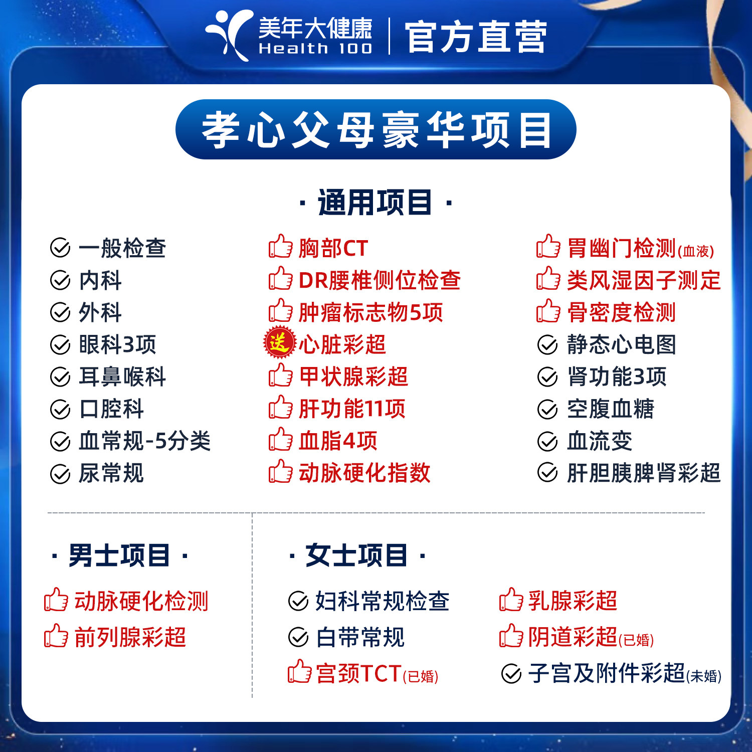 美年大健康孝心父母豪华体检套餐 中老年男女性心脑全身通用体检