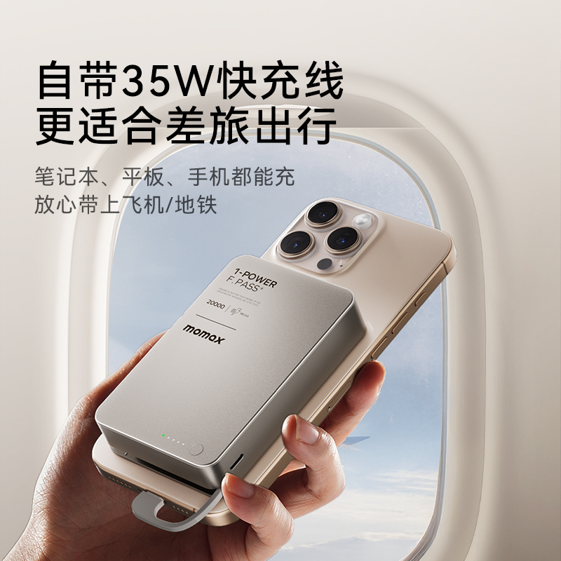 【3C认证】MOMAX摩米士自带线磁吸充电宝快充薄苹果手机移动电源
