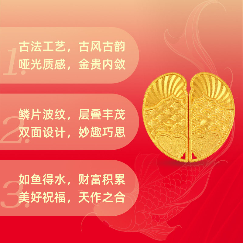 老庙黄金足金AU999.9富富有余古法工艺金条36g富贵安康天作之合