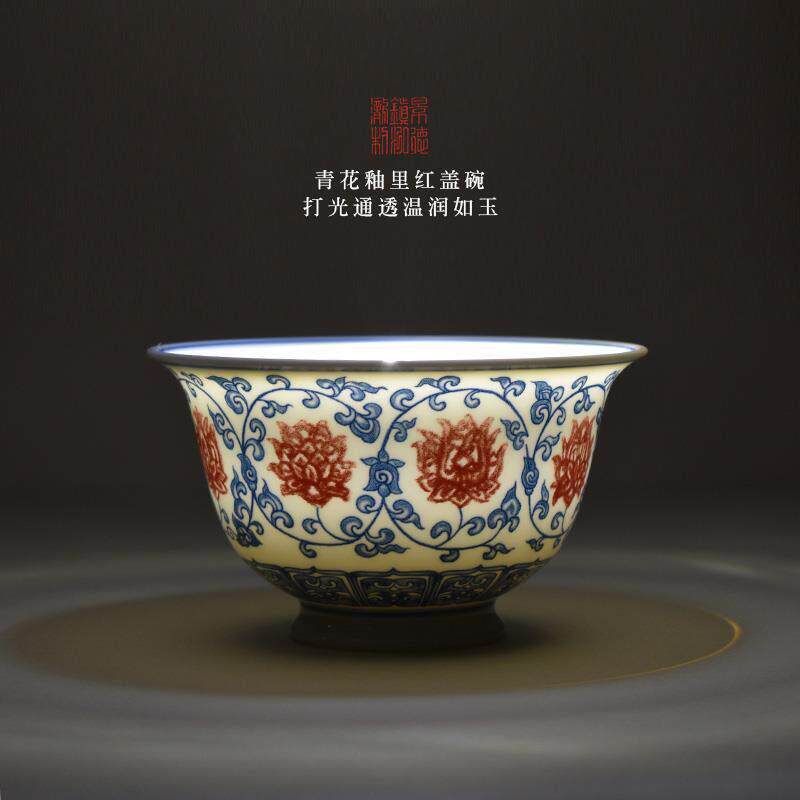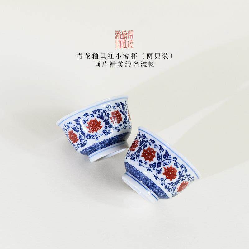 景德镇青花釉里红缠枝莲盖碗壶承茶杯七件套家用功夫茶具礼盒套装