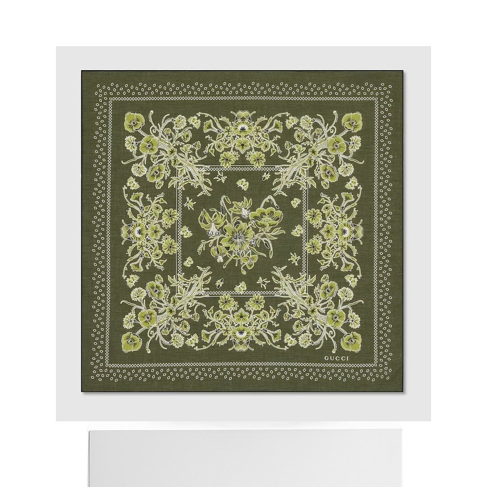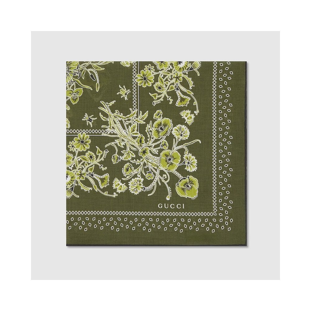 自营欧洲直邮Gucci/古驰 男士绿色棉纱花卉印花方巾