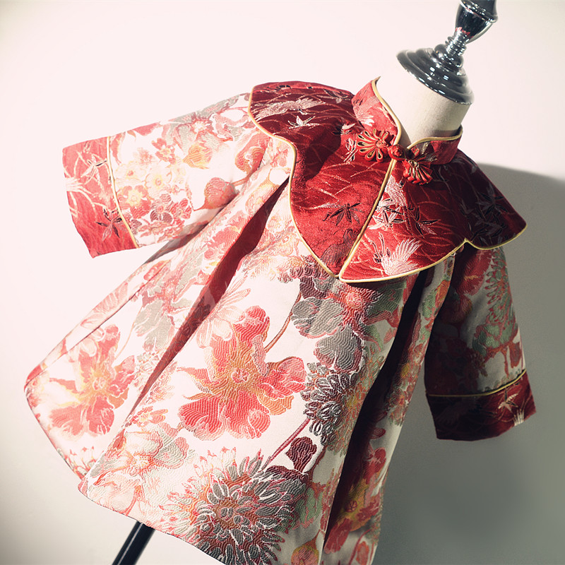 宝宝唐装中国风复古周岁礼服抓周宴会长袖礼服旗袍一周岁亲子礼服