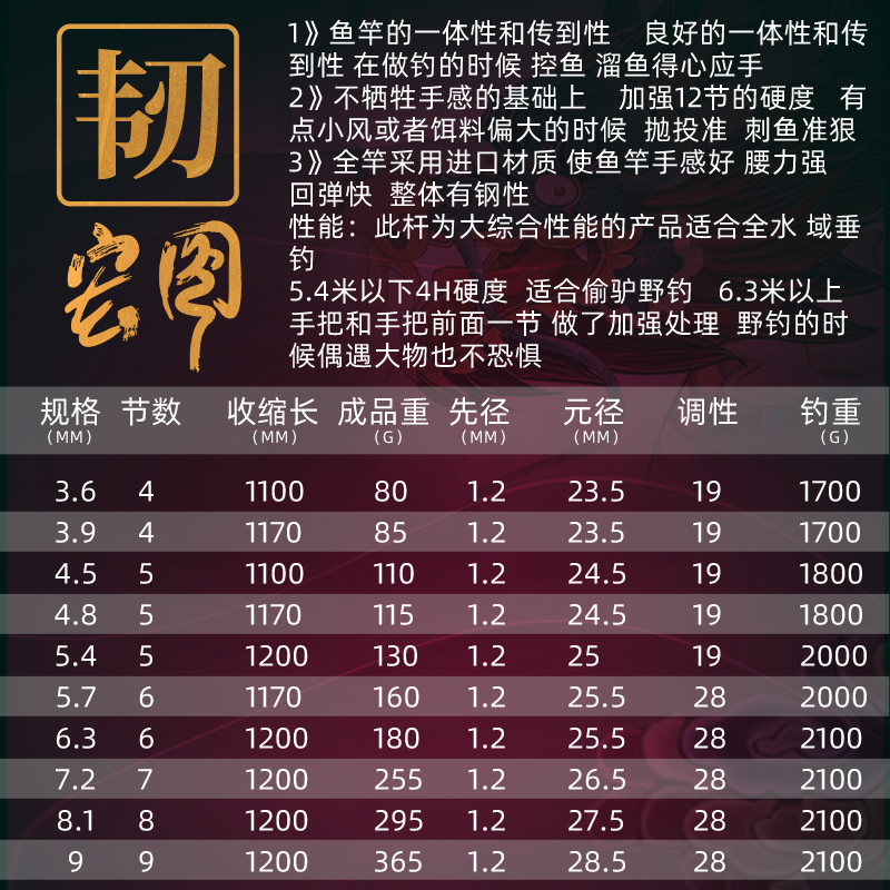 双宝宏图韧鱼竿192819调28调鲤