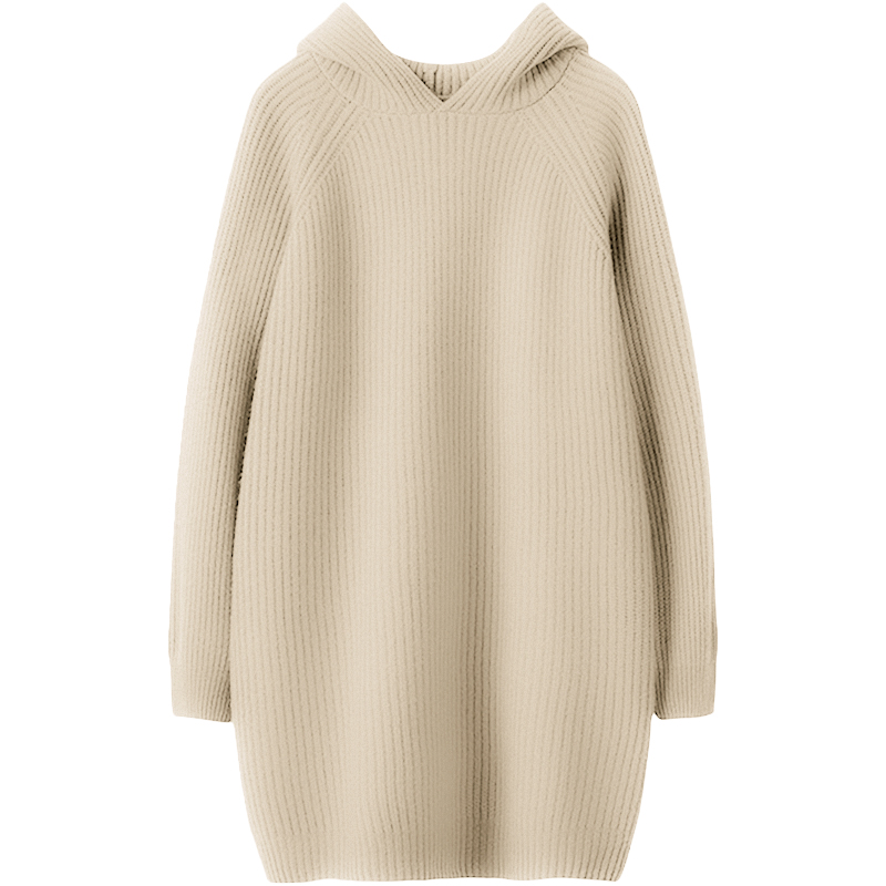 冬凤凰大克重坑条连帽羊绒毛衣连衣裙女羊绒帽衫宽松加厚中长款