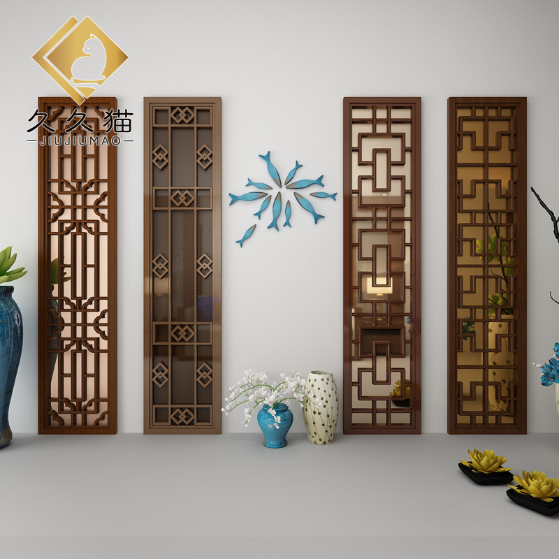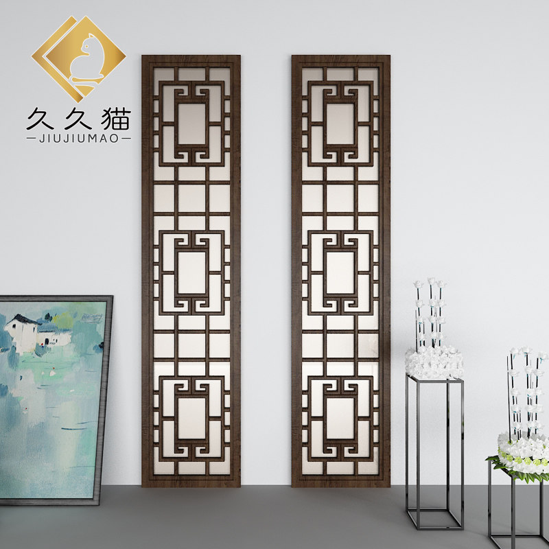 中式石材大板瓷砖背景墙胡桃木客厅电视墙实木花格护墙板橡木格栅