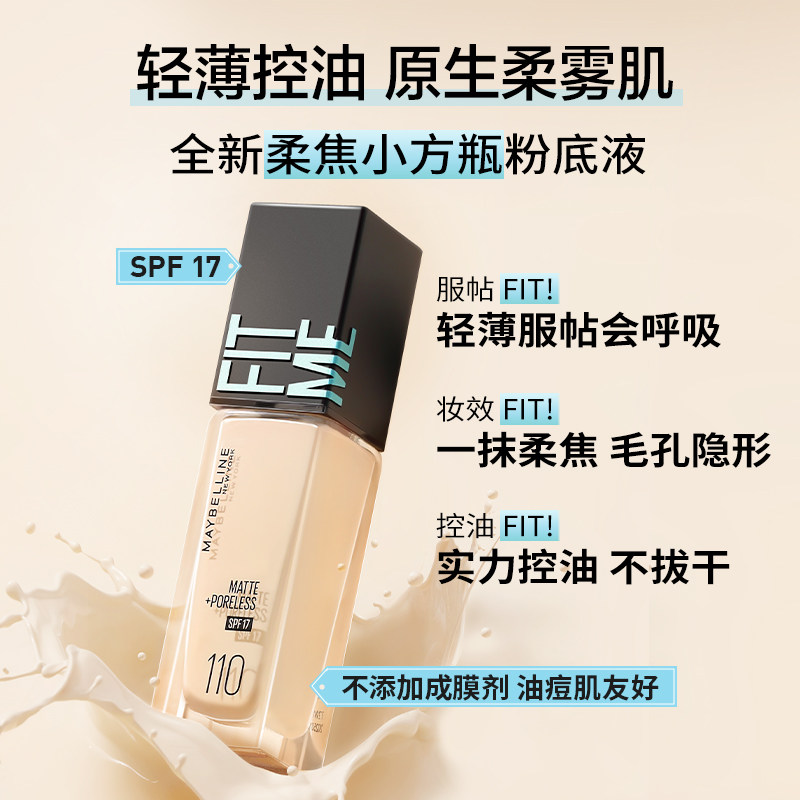 美宝莲粉底液控油遮瑕保湿持久自然持妆官方旗舰店正品