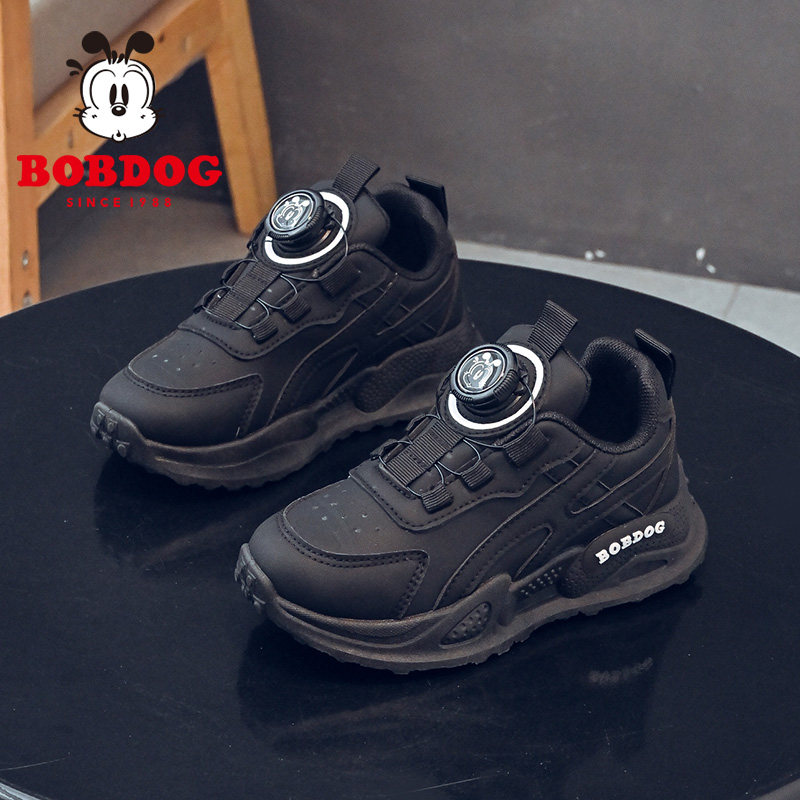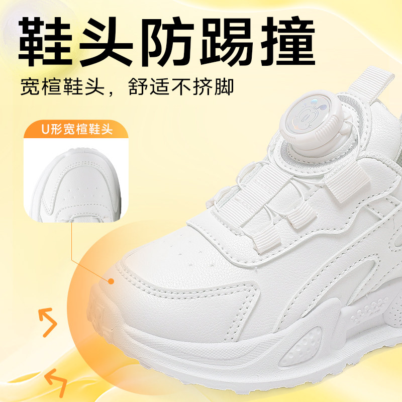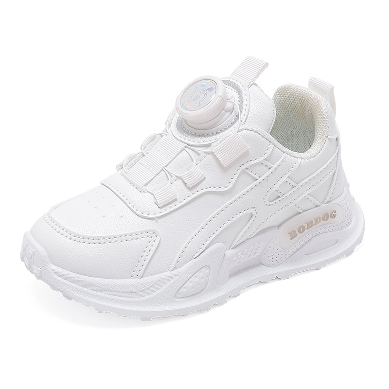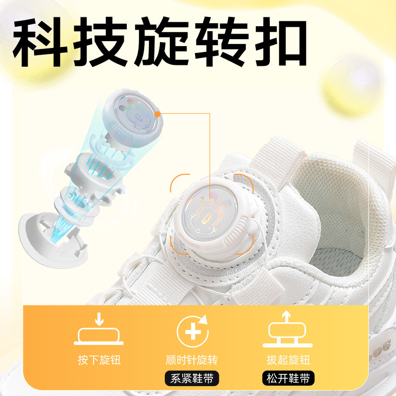 巴布豆童鞋男童运动鞋2025新款春秋男宝钮扣皮面小白鞋女儿童鞋子