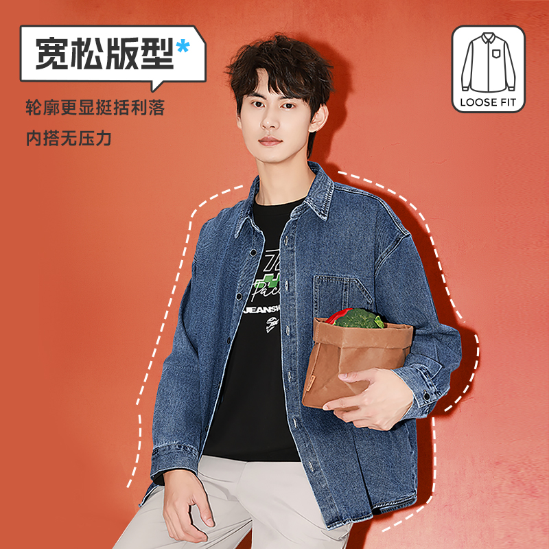 【王一博同款】真维斯复古牛仔衬衫秋季新品男女休闲衬衣外套KZ