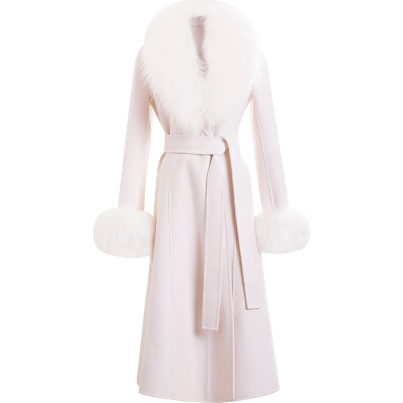 美妃大衣女2024年新款双面羊毛毛呢外套中长款赫本风呢子貉子毛领