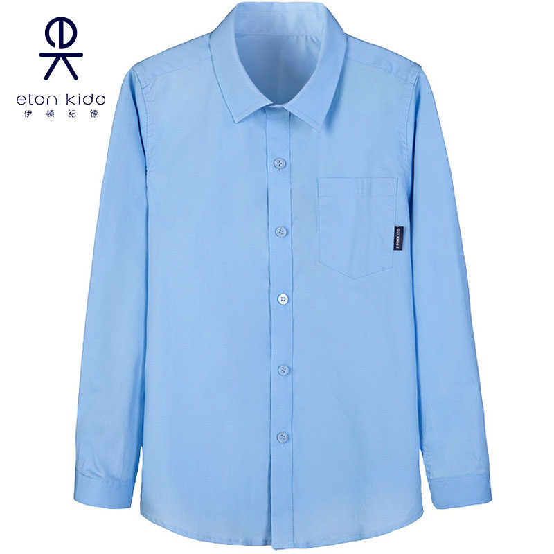伊顿纪德童装时尚儿童纯色衬衫男童蓝色学校长袖衬衣春秋款10C156