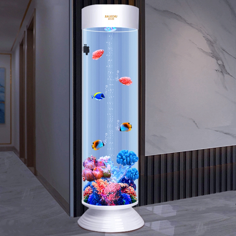 圆柱形鱼缸客厅中小型鱼缸立式金鱼水族箱亚克力免换水生态落地