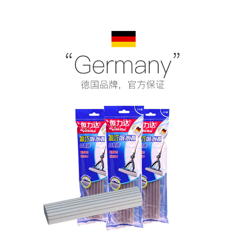 【自营】Vileda/微力达盈巧拖把墩布头对折式胶棉拖把头海绵替换