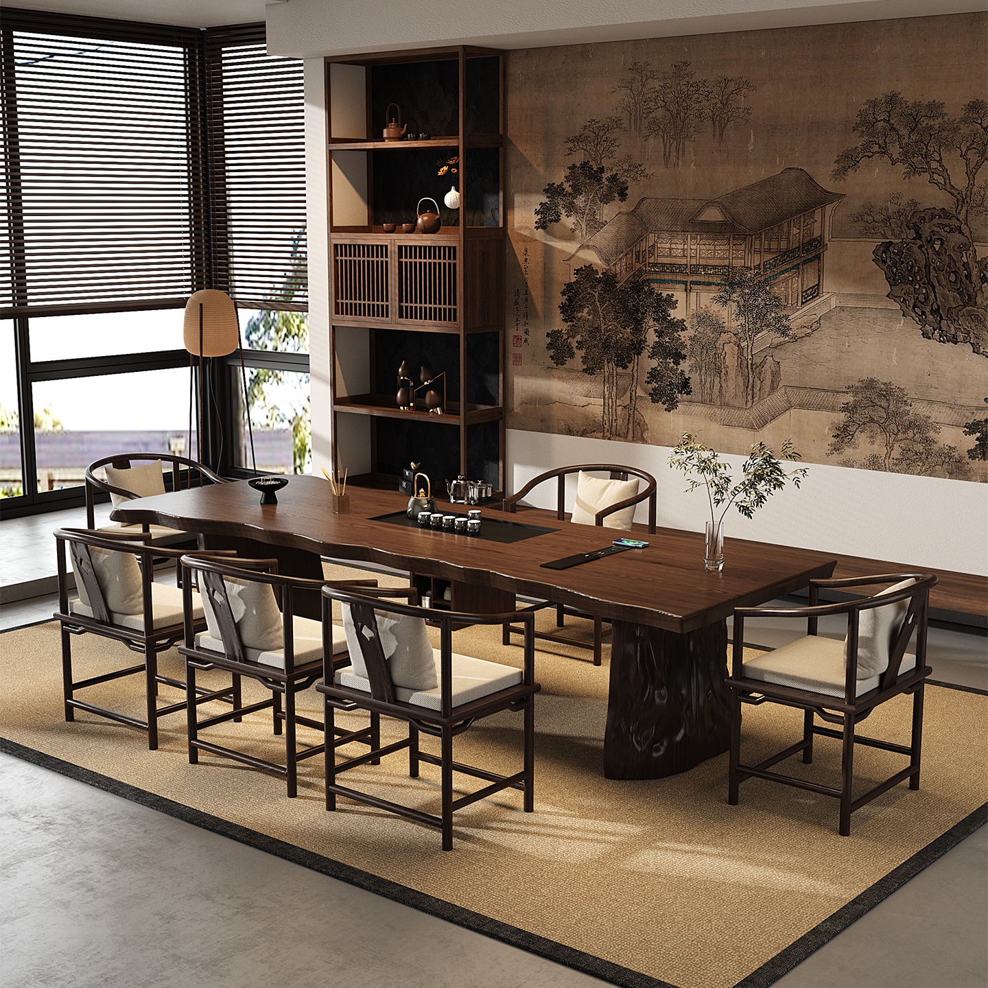 大板实木茶桌新中式禅意整板茶台轻奢现代办公室接待泡茶桌椅组合