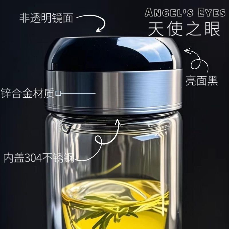 鹅蛋杯宝全钢盖大容量玻璃杯办公泡茶家用便携双层隔热鹅蛋杯
