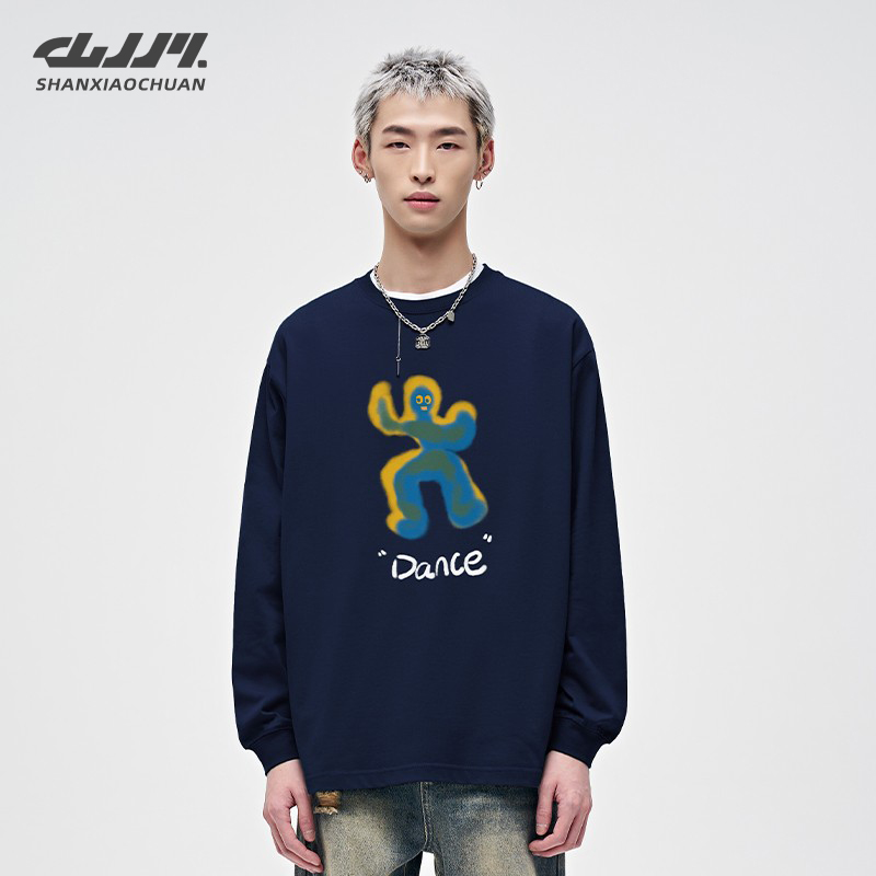 山小川潮牌涂鸦人像长袖t恤男纯棉春秋季圆领2025新款男生打底衫
