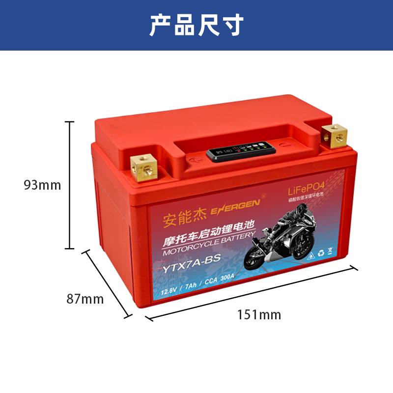 安能杰摩托车锂电池12V通用踏板车125弯梁车跨骑车启动蓄电瓶