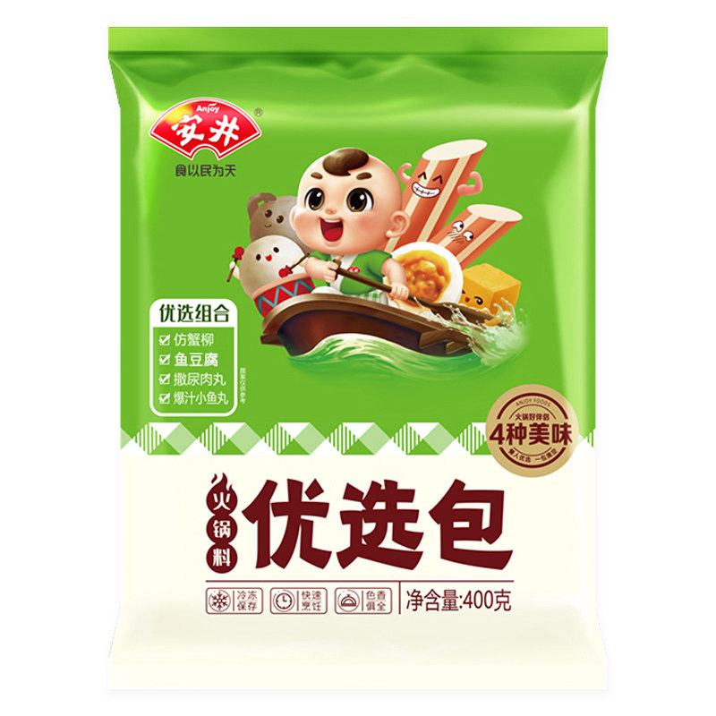 安井火锅优选包400g鱼丸撒尿肉丸鱼豆腐麻辣烫关东火锅食材半成品