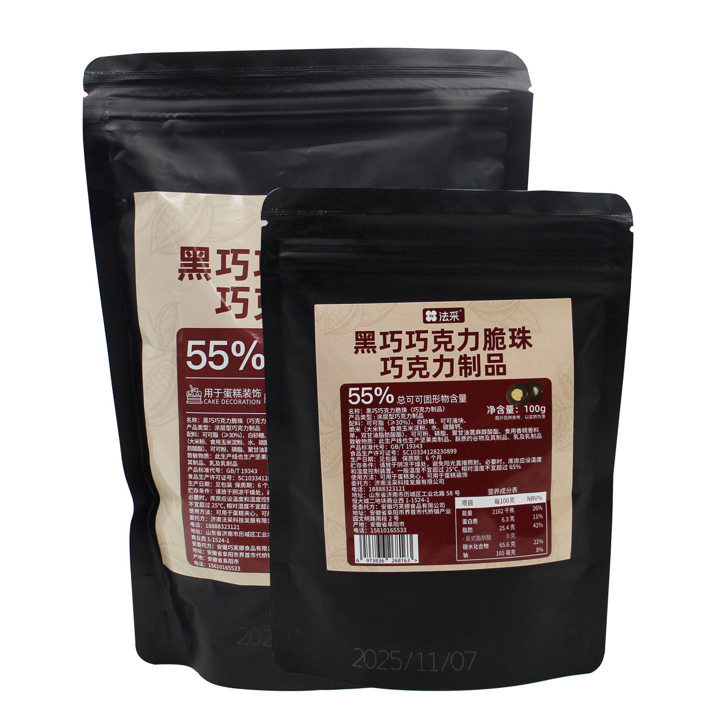 法采55%黑巧克力脆脆珠纯可可脂蛋糕夹心馅料冰淇淋装饰烘焙原料
