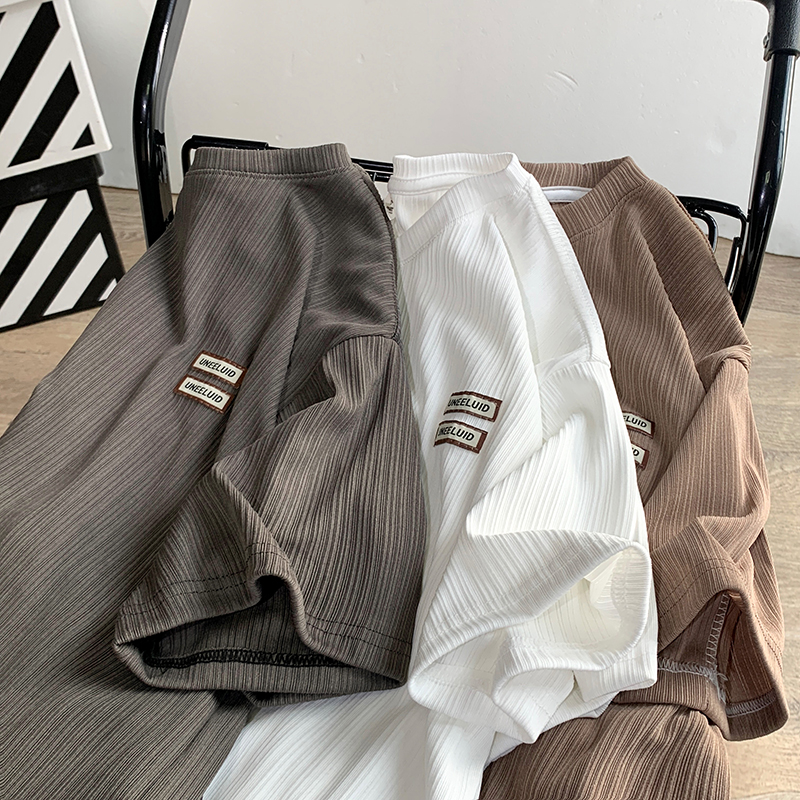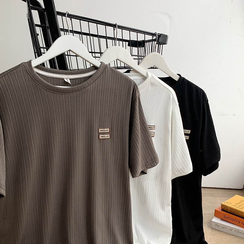 透气冰丝蛇骨纹贴标短袖体恤男女夏季宽松简约百搭基础款打底T恤