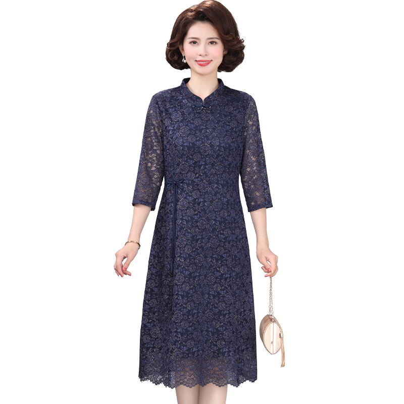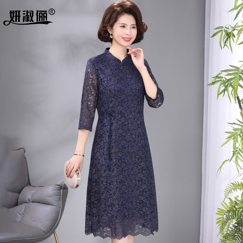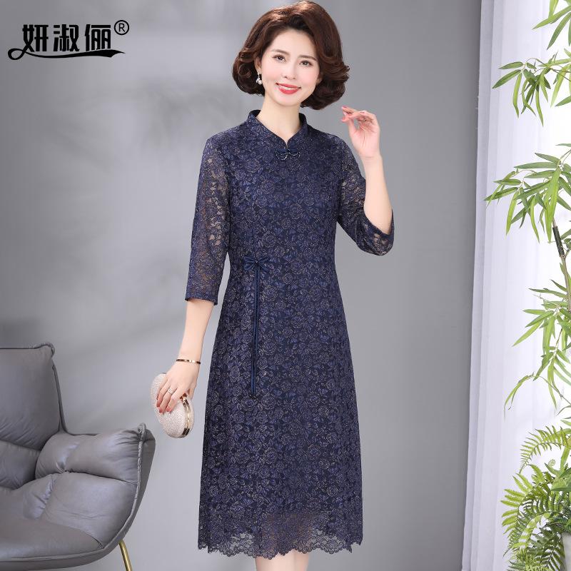 夏装2025新款喜婆婆婚宴礼服平时可穿洋气妈妈改良旗袍蕾丝连衣裙