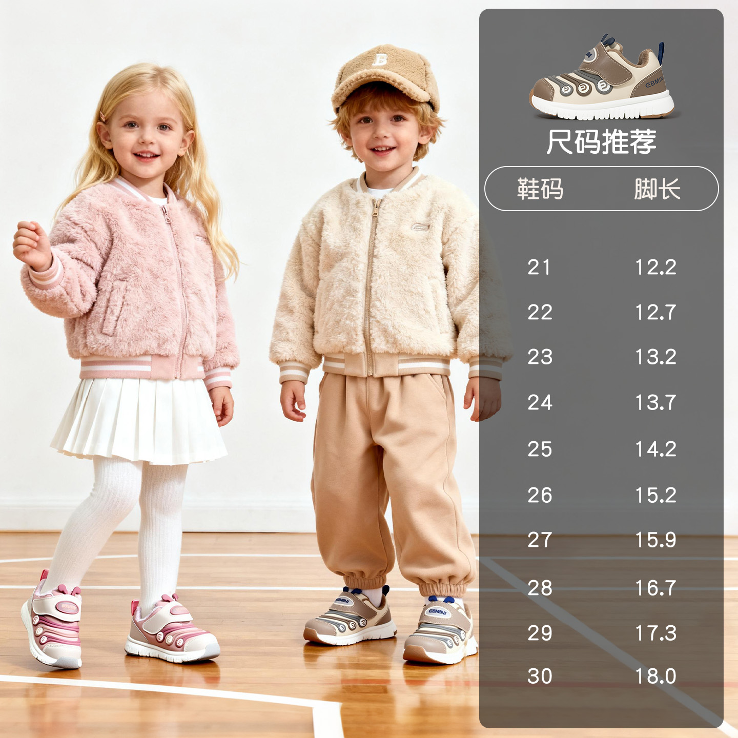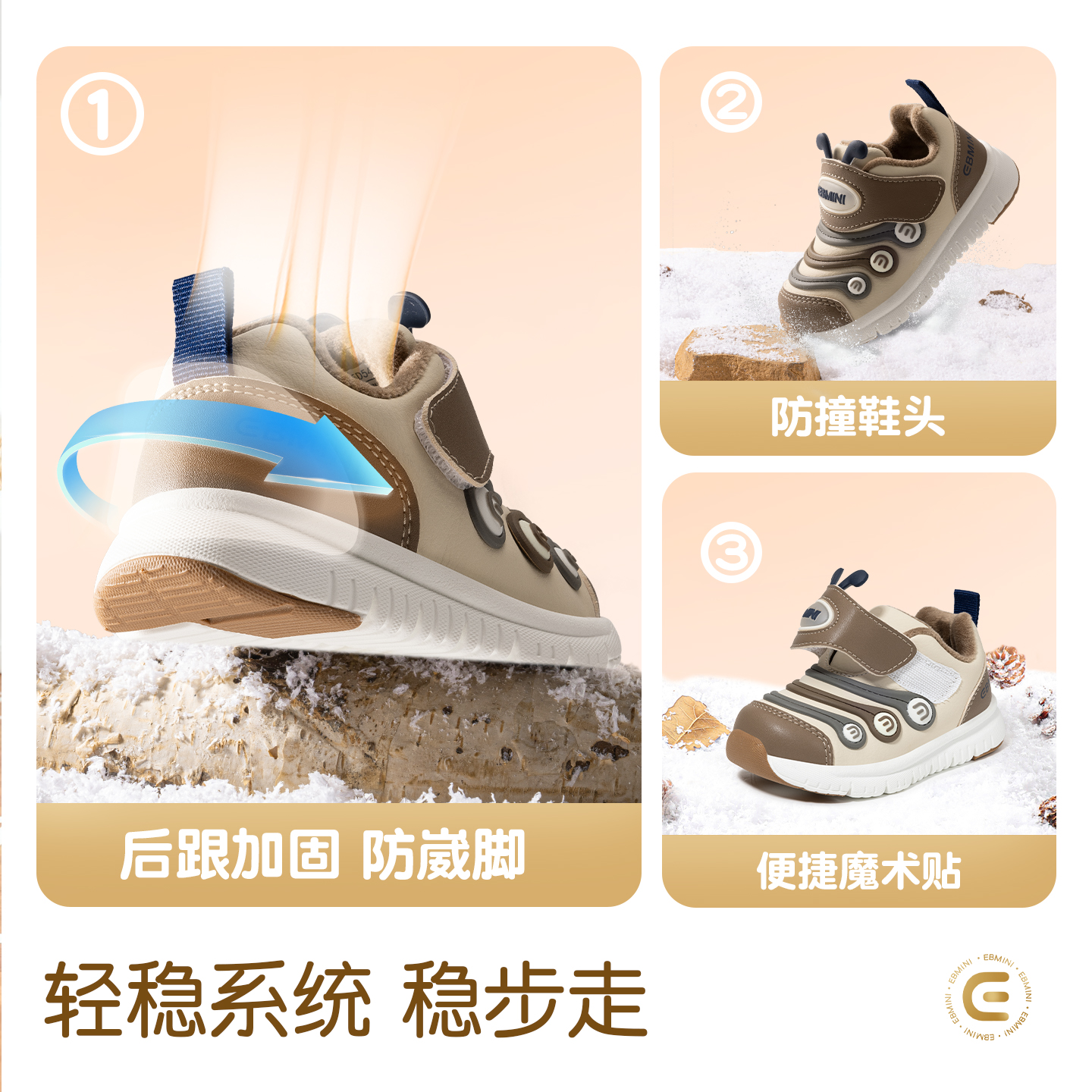 英贝米尼儿童运动鞋冬季加绒新款毛毛虫女童鞋软底男童户外休闲鞋