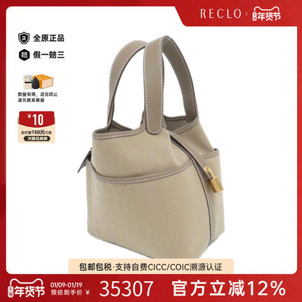 中古Hermes爱马仕女包A级95新picotinPM菜篮子大象灰手提包