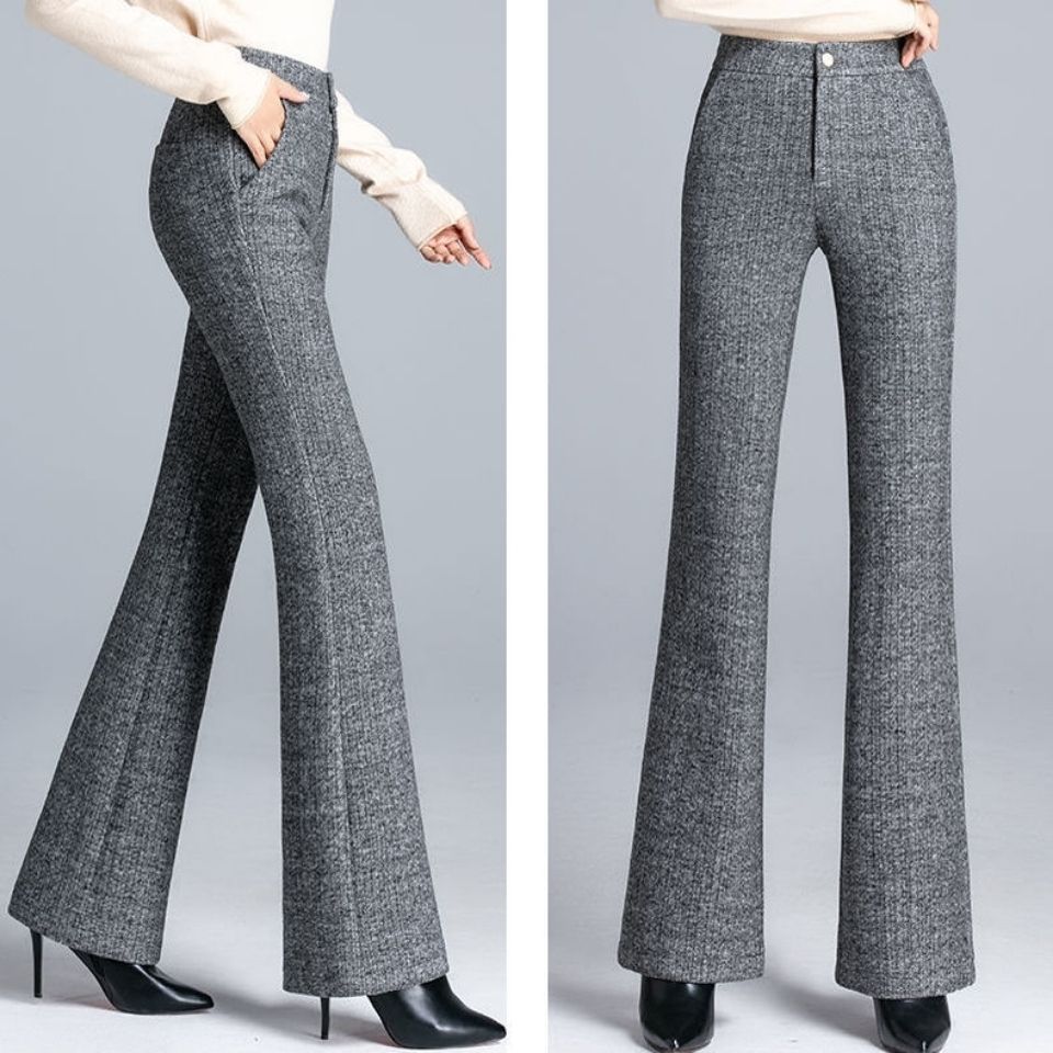 2025秋冬款毛呢喇叭裤女高腰垂感显瘦百搭加厚西装裤休闲微喇裤子