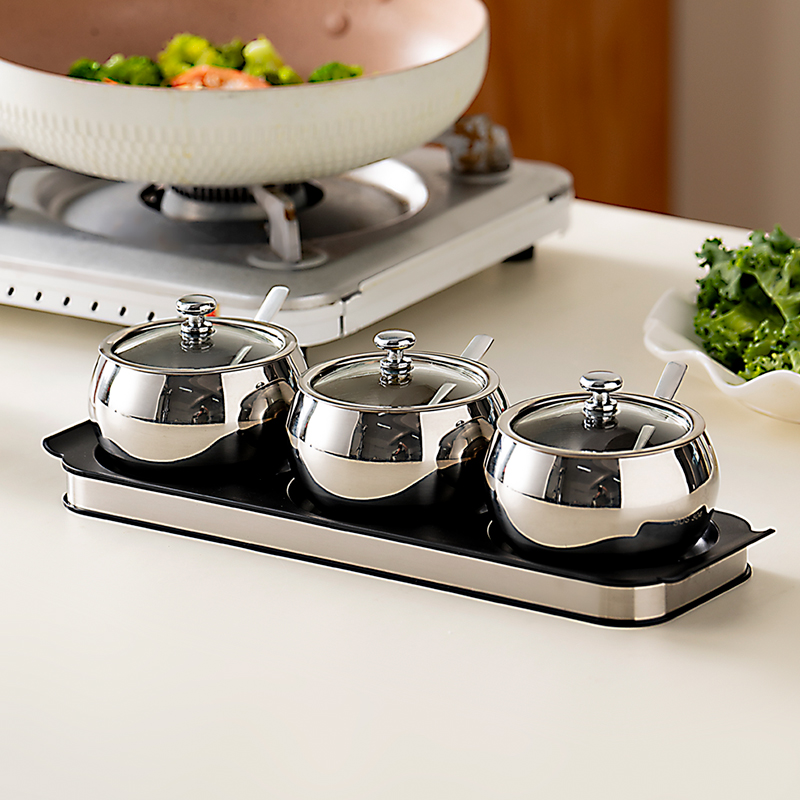 onlycook 304不锈钢调味罐盐罐家用厨房调料盒套装调料罐组合罐子