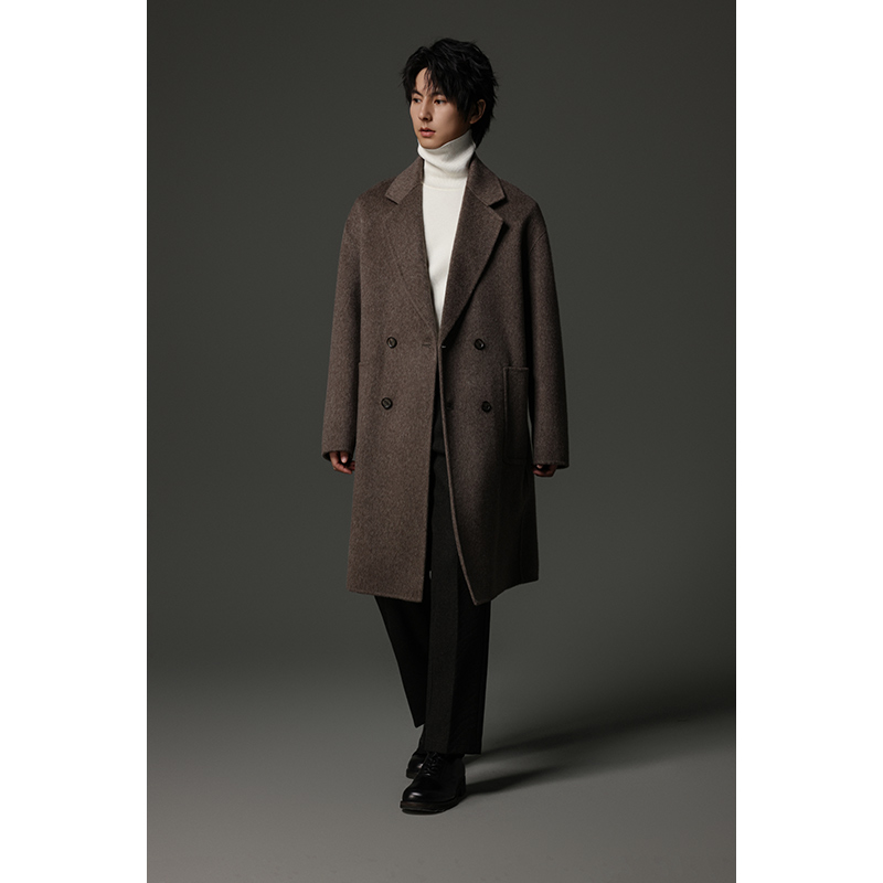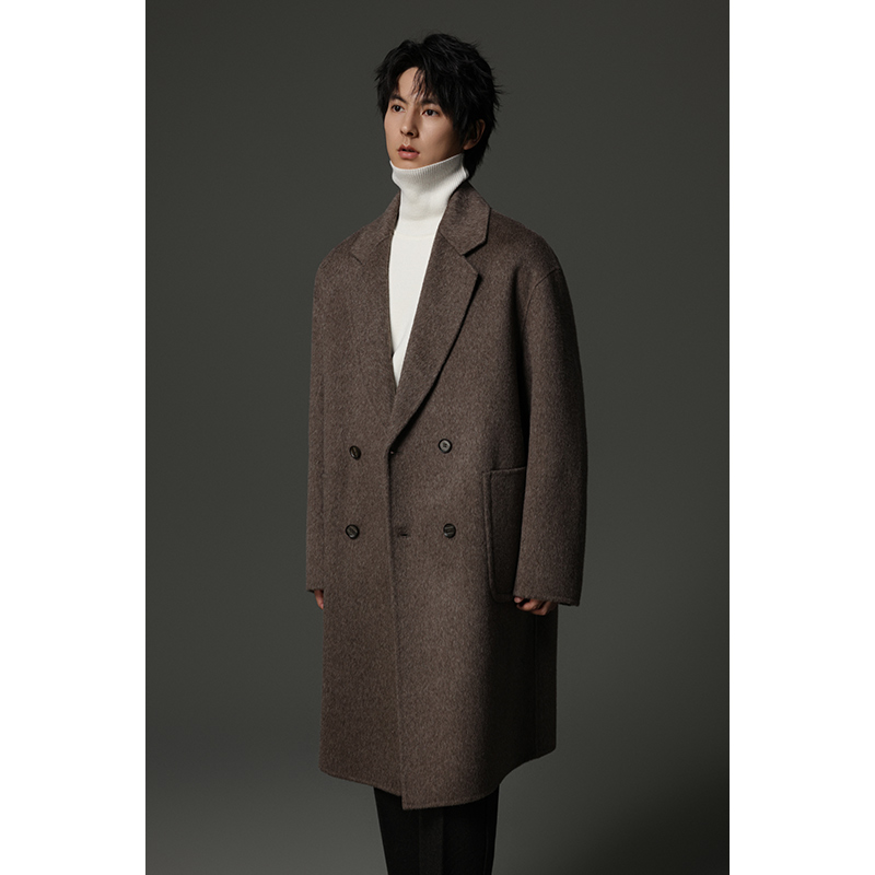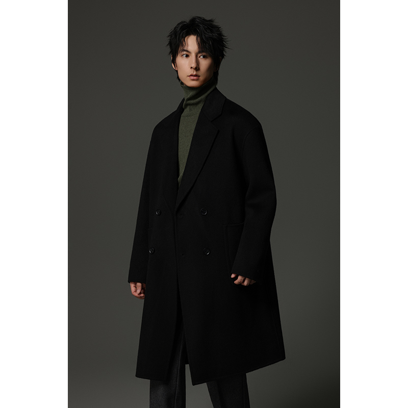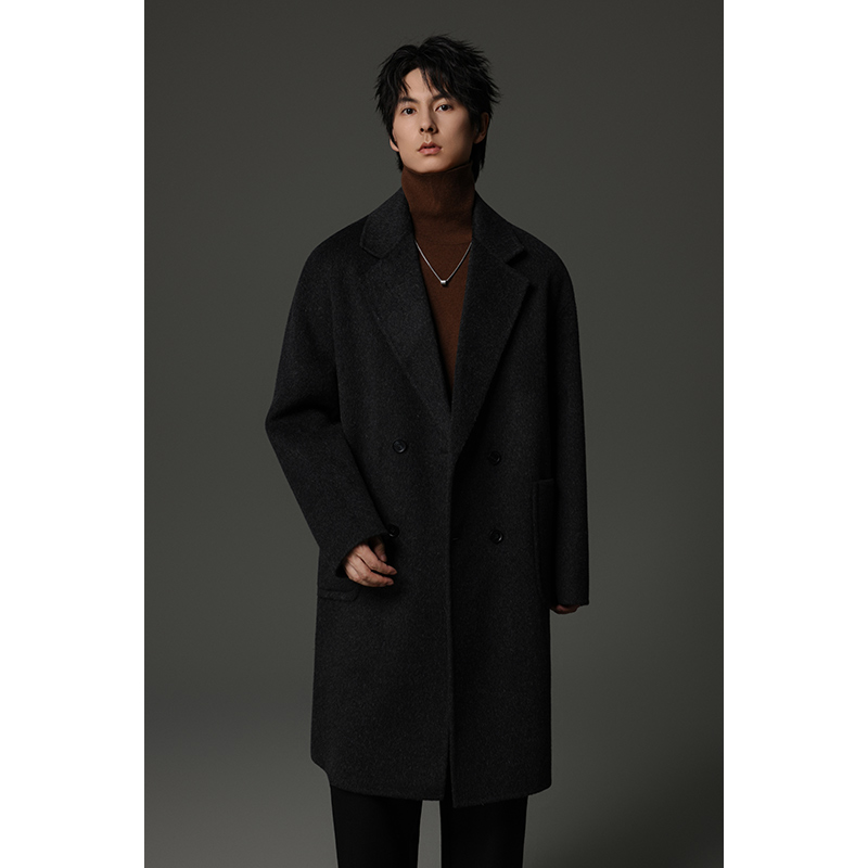 w2x冬季男士全羊毛外套男款双面呢子大衣秋冬男士加厚风衣中长款