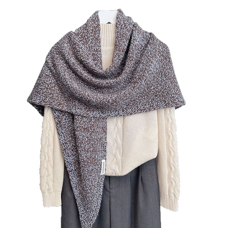 夹花纱线撞色大版三角巾女休闲时髦高品质羊毛混纺披肩围巾大气潮
